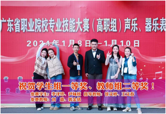 7.学生获奖:近年来,本专业学生先后获国际奖项4项、国家级奖项13项、省级奖项50余项。其中:第三届德国隆尼施国际钢琴大赛二等奖1项、三等奖2项;美国辛迪应用钢琴公开赛二等奖1项;第四届李斯特国际青少年钢琴大赛中国区选拔赛一等奖1项;“致敬肖邦”第三届华沙国际青少年钢琴比赛广州赛区银奖;广东省职业院校学生技能大赛(高职组)声乐、器乐表演赛项一等奖1项、二等奖5项、三等奖3项;广东省大学生计算机设计大赛(音乐)一等奖1项;香港国际声乐公开赛民族唱法二等奖1项、流行歌曲三等奖1项;广东省第三届大学生声乐比赛合唱组二等奖1项,独唱二等奖1项,小组唱三等奖1项;广东省大中专院校百歌颂中华歌咏比赛合唱三等奖1项;2019年元旦代表从化区参加广州市新中国成立70周年文艺汇演担任合唱表演方队;广东省高校艺术作品展演合唱二等奖;“永远跟党走”青年主题省点一等奖1项,二等奖1项。