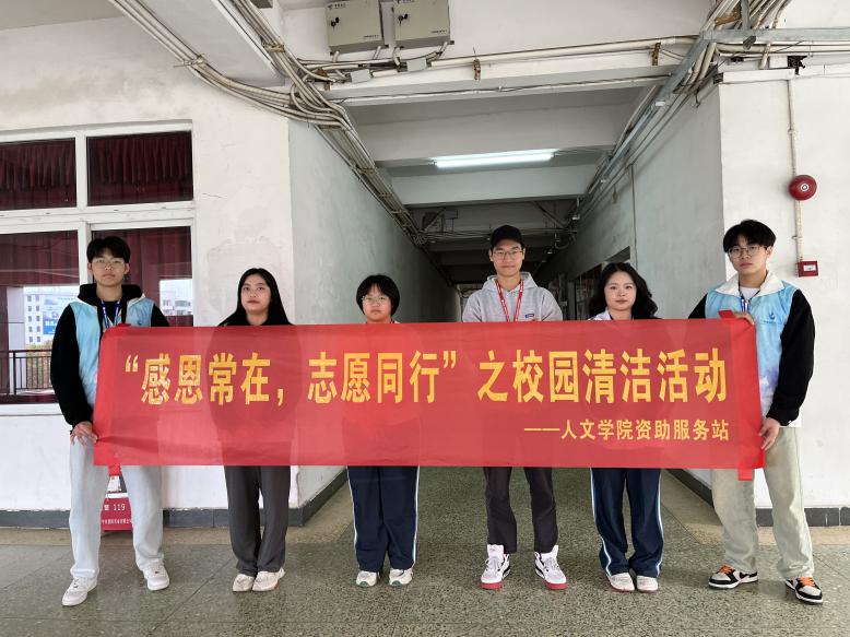 为增强受资助学生的社会责任意识、感恩意识和奉献意识,鼓励受资助学生“知行合一”,培养引导学生在志愿服务中以劳树德、以劳增智、以劳强体、以劳育美,人文学院资助服务站以“雷锋月”为契机,从三月起,定于每周四组织受资助学生开展“感恩常在,志愿同行”校园清扫活动。