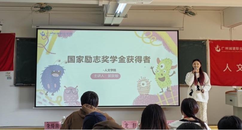 紧接着,国家励志奖学金代表郭吴敏同学上台分享,她从四个方面分享在校一年半的学习和工作上的事情,从如何平衡学习和工作、如何了解到助学贷款以及合理运用学校资助来更好的帮助自己等方面展开论述。她提到:尽管在一些比赛上,会比较辛苦和吃力,但她依旧选择咬牙坚持下去,始终秉持“撸起袖子加油干”的信念。