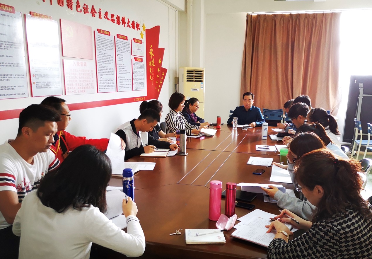 11月18日上午,人文学院在人文艺术楼513会议室召开党政联席扩大会议暨“不忘初心、牢记使命” 主题教育。学院领导班子、教研室主任、专业带头人及党支部书记参加了本次会议,会议由校党委副书记、人文学院院长鲁岩主持。