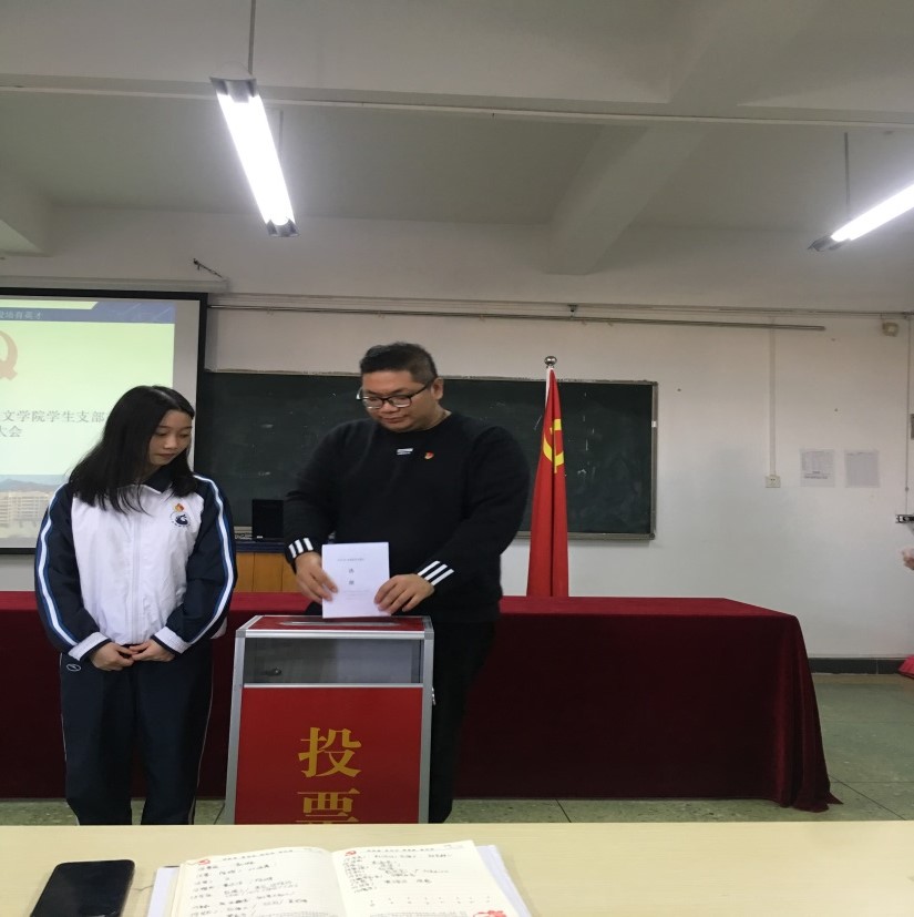 为深入贯彻落实全面从严治党要求,进一步加强基层党组织建设,根据《中国共产党章程》、《中国共产党普通高校基层组织工作条例》、《中国共产党支部工作条例(试行)》等相关规定,人文学院学生党支部委员会于11月19日下午3:00在人文艺术楼513会议室召开换届选举大会。人文学院党总支副书记彭聪、学生支部书记王文龙及支部全体成员参加会议。会议由支部书记王文龙主持。