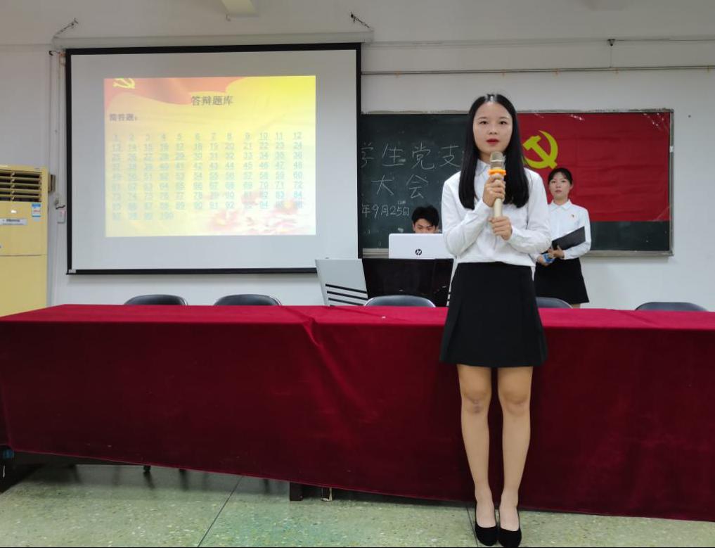 会议严格按照党组织接收预备党员程序,首先由发展对象汇报个人情况,随后入党介绍人介绍培养考察情况,然后由全体党员讨论并发表意见,投票表决接收预备党员。大会一致认为,陈敏婷、方浩波、胡晓欢等19名同志基本符合党员条件,同意接收他们为中共预备党员。大会结束后,由彭副书记为新吸收的19名预备党员佩戴党员徽章,接着预备党员在徐可欣老师的带领下进行入党宣誓。