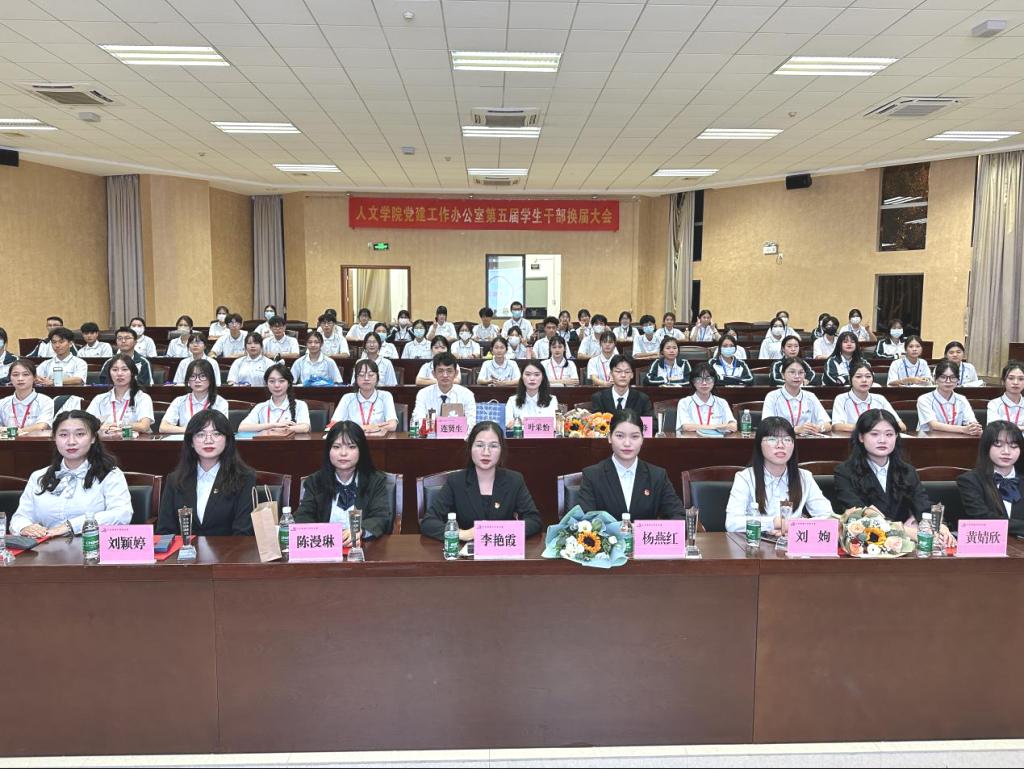 为加强学生干部队伍建设,促使学生干部积极发挥带头作用,人文学院党建工作办公室于10月17日19:30在建工机电楼A101音乐厅举行第五届学生干部的换届大会。人文党建工作办公室指导老师李艳霞及党建工作办公室全体成员出席本次大会。会议由党建工作办公室宣传部部长冯玉颖与宣传部成员钟培鑫主持。