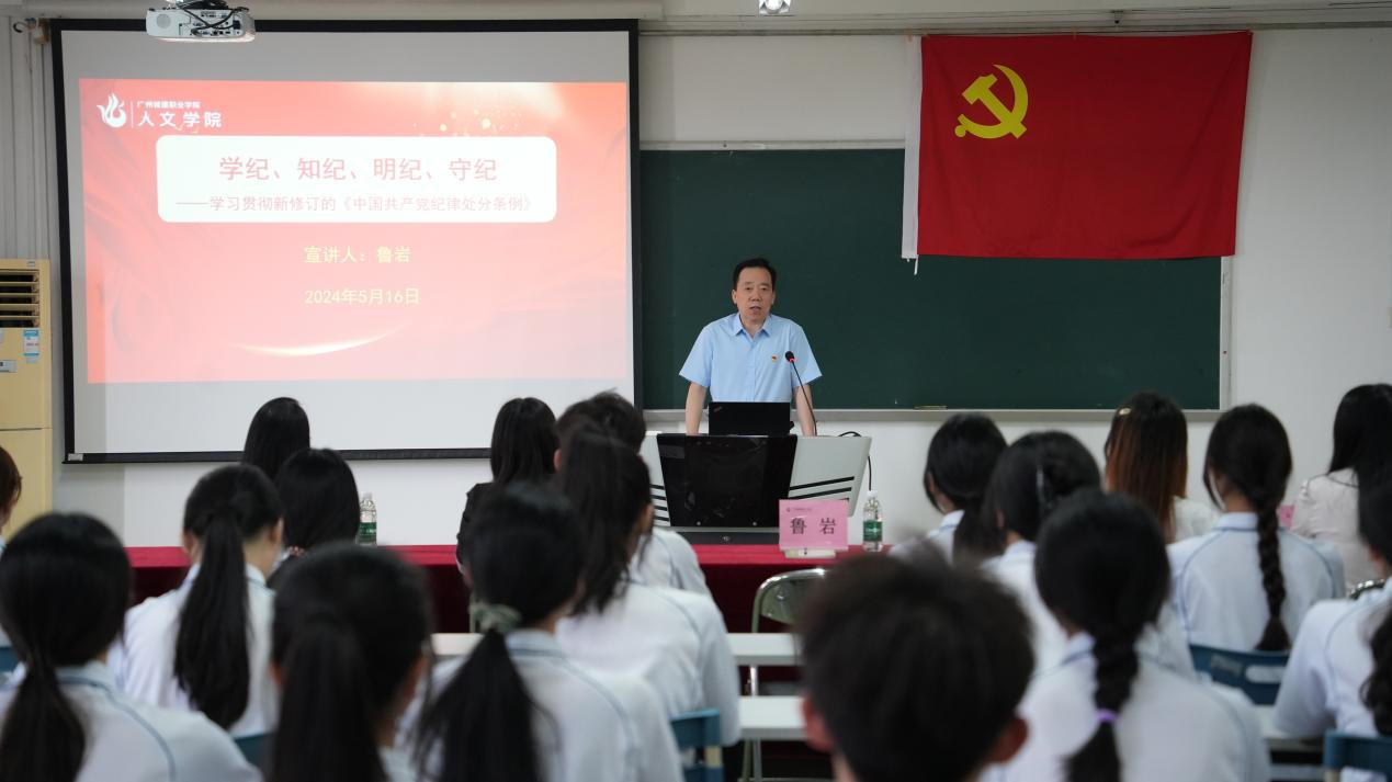为认真学习贯彻新修订的《中国共产党纪律处分条例》,落实学校党委关于党纪学习教育实施方案,增强党员的纪律自觉性,5月16日下午,我院党委组织全体学生党员在人文艺术楼513会议室进行了“书记第一课”党纪学习教育主题党课暨“我与书记面对面”座谈会,学院党委书记鲁岩作了题为“学纪、知纪、明纪、守纪”的主题党课。学生第四党支部书记吴伟仪、宣传委员郑妙英、组织委员董蕙、辅导员高珊以及全体学生党员参加了本次党课学习和座谈活动。