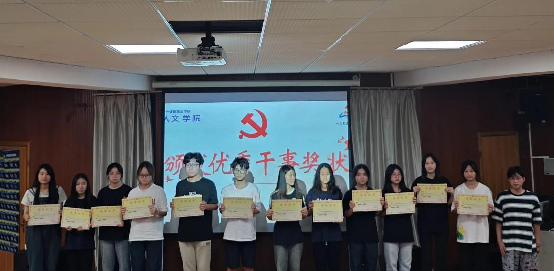 紧接着,会议进入表彰环节,彭聪和何智煜共同为本学期工作表现突出的优秀学生干部进行表彰,不仅是对干部工作的肯定和鼓励,更是对全体成员的鞭策和激励。希望全体成员以先进为榜样,不断提升自己的能力和素质,为我院的党建工作贡献自己的力量。