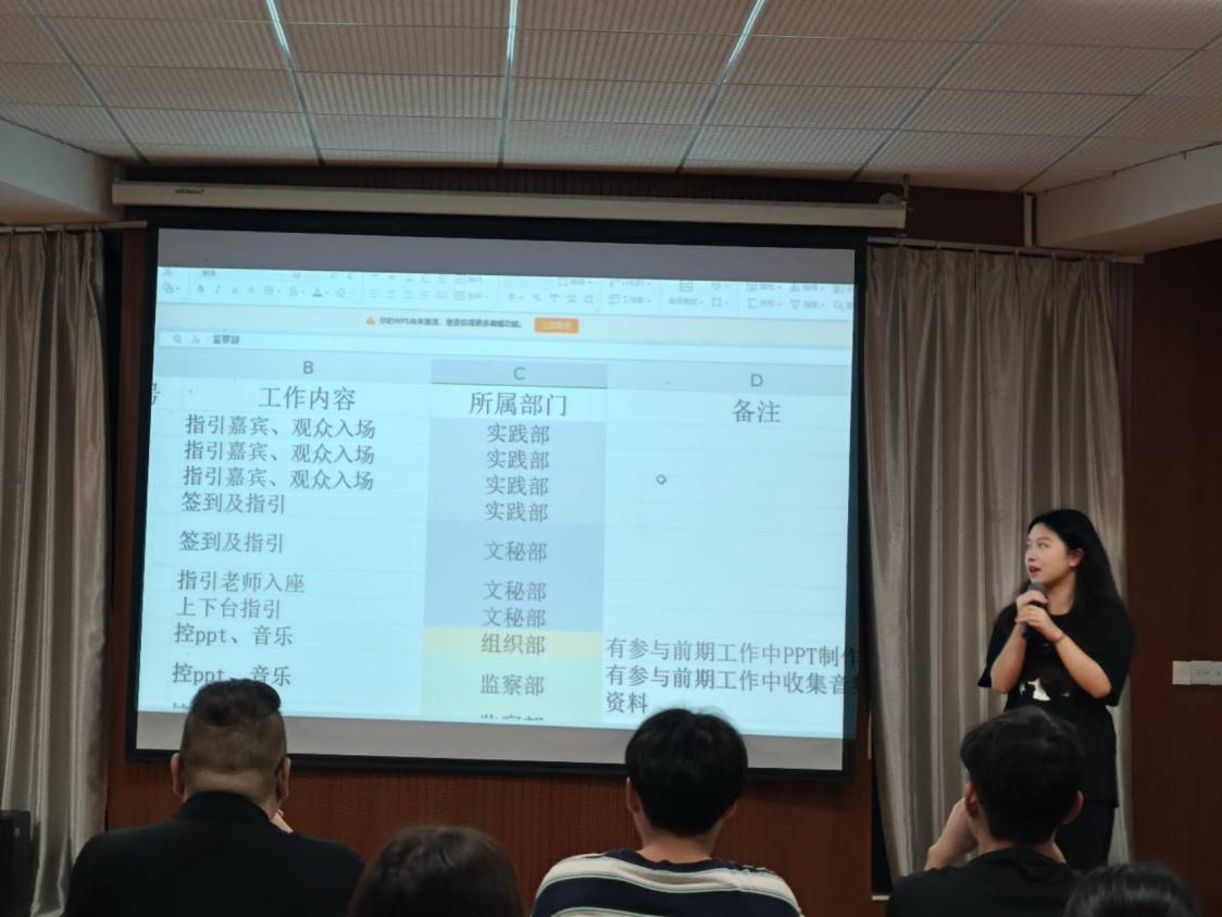 会议伊始,党建工作办公室秘书长何智煜回顾了过去一学期党建工作的亮点和成绩,并对接下来的红歌大赛的筹备和组织工作提出了具体要求。他表示,红歌大赛每一个部门必须各司其职、责任到人,要出色的完成本次工作。随后,在红歌大赛工作部署环节,组织部副部长陈子怡介绍了红歌大赛各部门具体分工安排、比赛规则及注意事项,确保大赛的顺利开展。本次大赛将秉持公平、公正、公开的原则,确保每组参赛选手都能得到充分的展示和锻炼,用歌声更好地呈现对党和祖国的热爱。