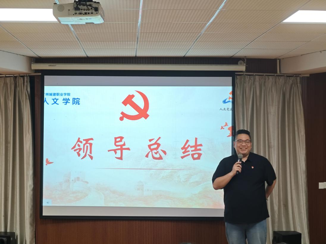 最后,彭聪作会议总结。他对过去一个学期学院党建工作进行了回顾和总结。他充分肯定了大家在工作中的付出和成绩,同时也指出作为学院重要的学生组织,要有勇于担当,敢于奉献的精神。他希望全体党建干部能够加深理论学习,提升综合能力,积极克服困难,将挑战转化为成长的动力。最后他强调,本次歌咏比赛是学校为庆祝中华人民共和国成立75周年举办的庆祝活动,是展示城建师生爱党爱国、积极向上的精神风貌的一次展示,全体人员要勇于承担责任,积极履行职责,确保大赛取得圆满成功。