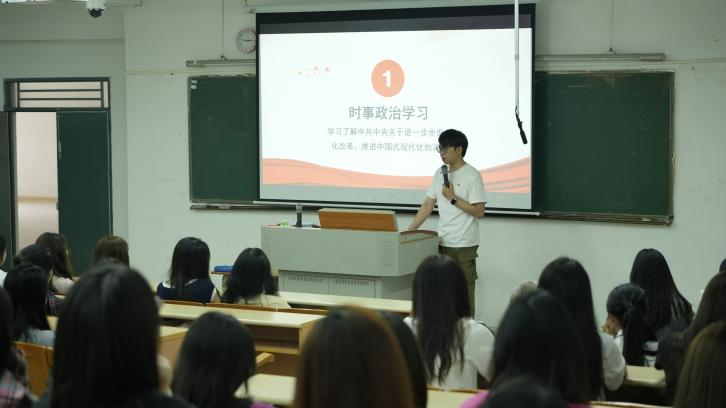 随后,黄金坤为新生进行入学教育启蒙党课,结合时事热点,深入剖析了中国共产党在应对各种挑战中展现出的强大领导力和凝聚力。他通过讲述革命先烈的英勇事迹和当代优秀共产党员的先进事迹,激励新生们树立正确的世界观、人生观和价值观,坚定理想信念,积极向党组织靠拢。