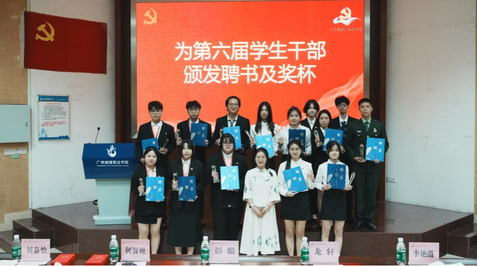 紧接着,李艳霞老师为第六届学生干部颁发聘书和奖杯,第六届学生干部为第七届学生干部佩戴胸卡,象征着党建工作办公室精神的传承与发扬。