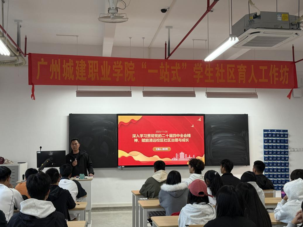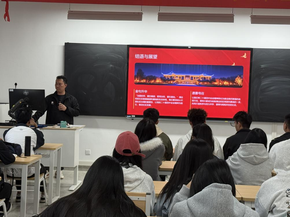 为深入学习贯彻党的二十届四中全会精神,清远校区近日举办“赋能社区治理与成长”主题党课暨育人工作坊活动,学生党员、入党积极分子及学生代表参与了活动。