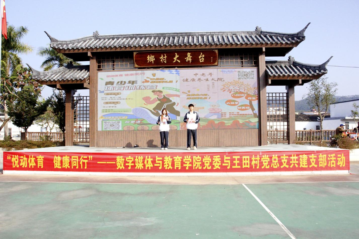 12月6日上午,我院党委与水头镇王田村党总支在王田村党群服务中心联合举办“悦动体育,健康同行”结对共建党支部活动,冯晴、袁华琦两位老师带领学院清远校区党建工作办公室全体学生参与了活动。
