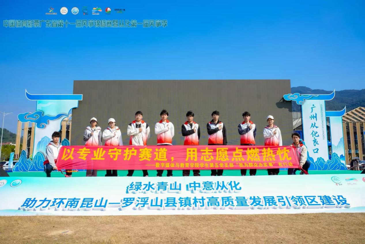 12月20日至21日,广东省第十一届风筝锦标赛在广州从化良口生态小镇圆满举行。这场集竞技、艺术与文化于一体的盛会,不仅吸引了全省各地的风筝爱好者与专业队伍,更有一群身着统一服装、面带温暖笑容的年轻志愿者活跃在赛场内外——他们正是数字媒体与教育学院学生第五党支部的入党积极分子。在为期两天的赛事中,支部成员以专业素养筑牢服务根基,以志愿精神传递青春温度,生动诠释了“我为群众办实事”的初心与担当。