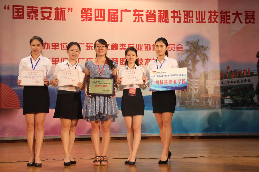 6月11-12日,人文学院潘晨老师带领2014级文秘班学生参加由广东省文秘类专业协作委员会主办的2016年“国泰安杯”第四届广东省秘书职业技能大赛获得团体三等奖、个人操作技能一等奖和全能二等奖的好成绩。