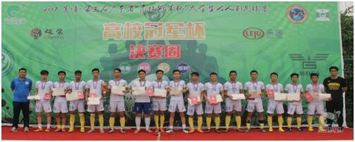 据悉,本届“高校冠军杯”比赛历时四个月,分成巡回赛、决赛圈两个阶段,参赛队伍规模超历届比赛,共吸引了广东工业大学、暨南大学、广州美术学院、华南理工大学、华南师范大学、华南农业大学等本专科院校共76所高校报名参加。这是我校足球队获2016年广东省“省长杯”足球联赛丙B组冠军后又一突破,进一步提升我校体育运动的影响力。