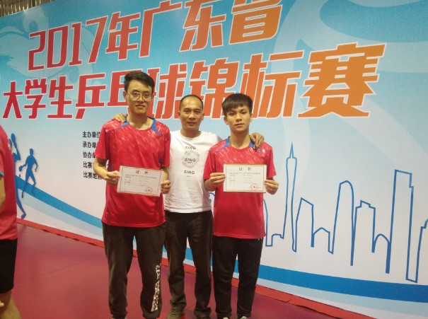11月8至12日,在杨瑞成老师带领下,学校乒乓球队参加由广东省教育厅主办,广东省学生体育艺术联合会承办的2017年广东省大学生乒乓球锦标赛,与来自全省26所高职院校、260名运动员同场竞技(其中部分院校有特招生),取得了丙组男子双打第四名的好成绩,为学校赢得了荣誉。