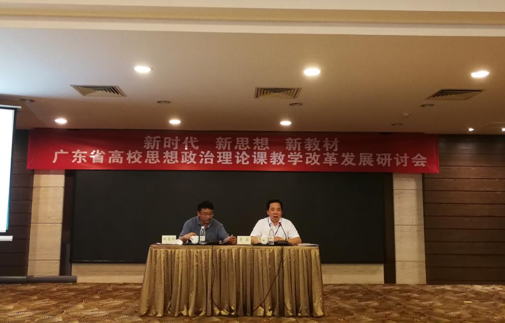 6月9日,“新时代、新思想、新教材”——广东省高校思想政治理论课教学改革发展研讨会在中山大学南方学院召开,广东省高等学校思想政治教育研究会会长、广东教育厅原巡视员李小鲁,广东省委宣传部理论处处长丁晋清,广州市委宣传部理论处处长梅声洪以及全省各高校分管思想政治理论课教学和研究的领导、马克思主义学院院长(思政部主任)、思政课教师等150余人参加了本次研讨会。我校党委副书记鲁岩及思政部兰娟主任、田应辉老师参加了本次研讨会。
