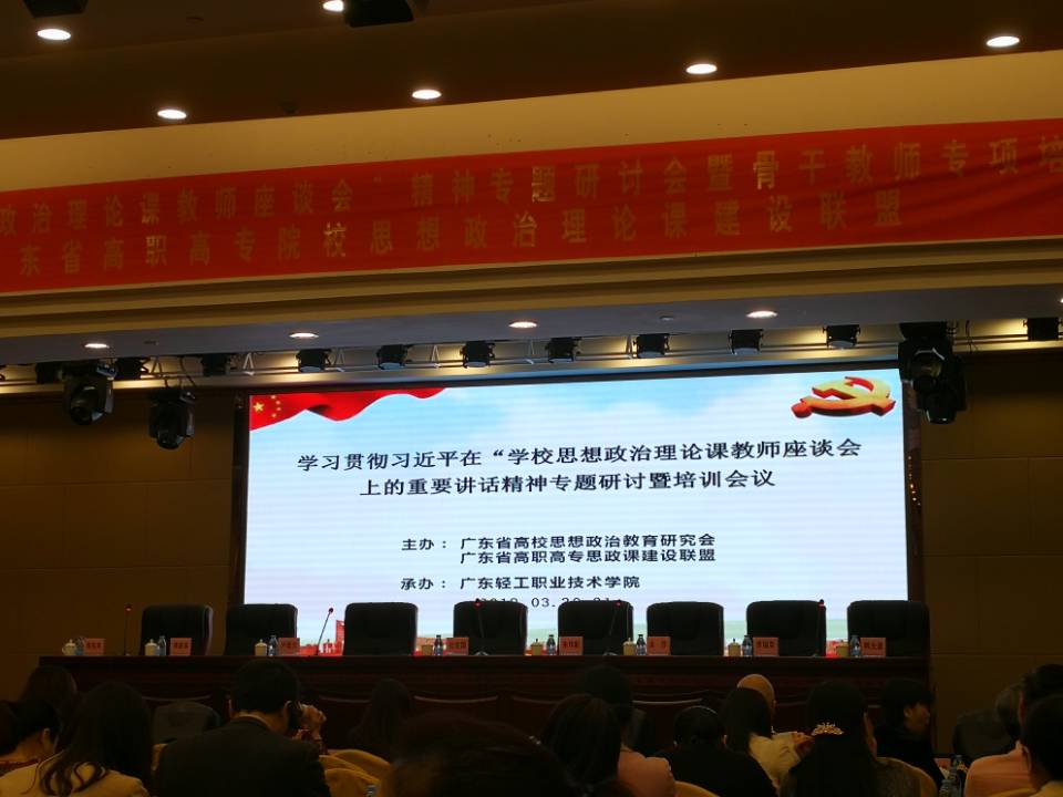 3月29日-31日,广东省高职高专思政课建设联盟理事会工作会议暨思政课骨干教师培训会议在海珠区广轩大厦举行,学校党委副书记鲁岩、思政部基础教研室主任兰娟、概论教研室教师夏果平应邀参加了本次会议。