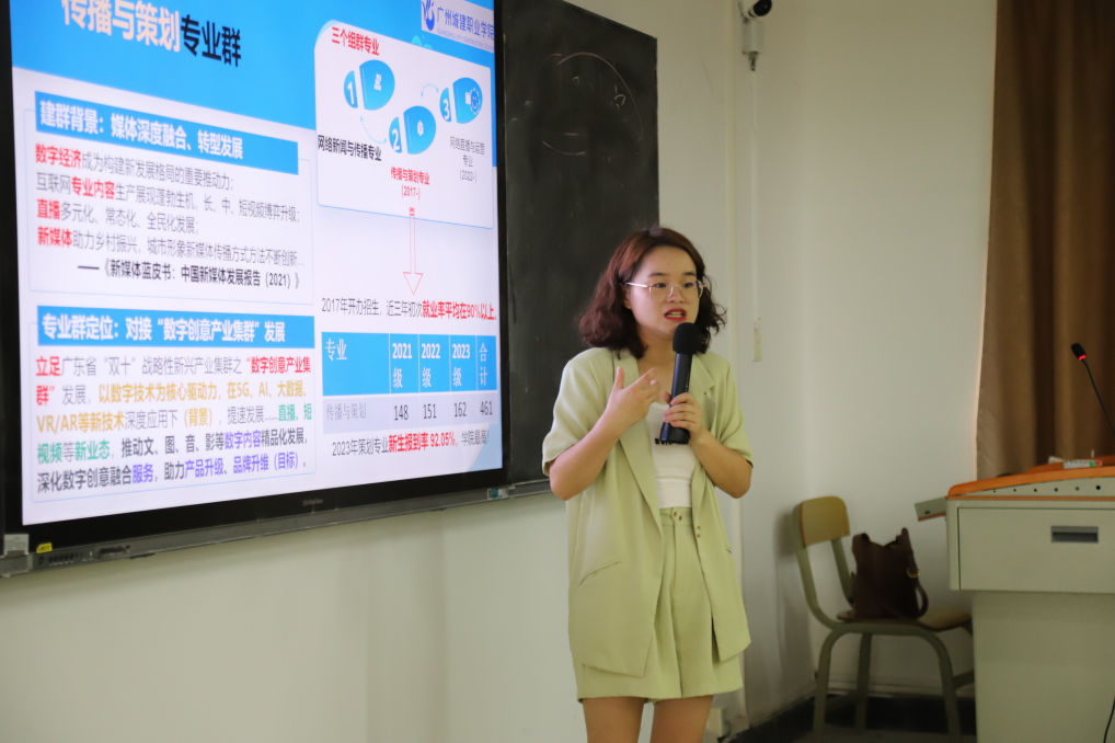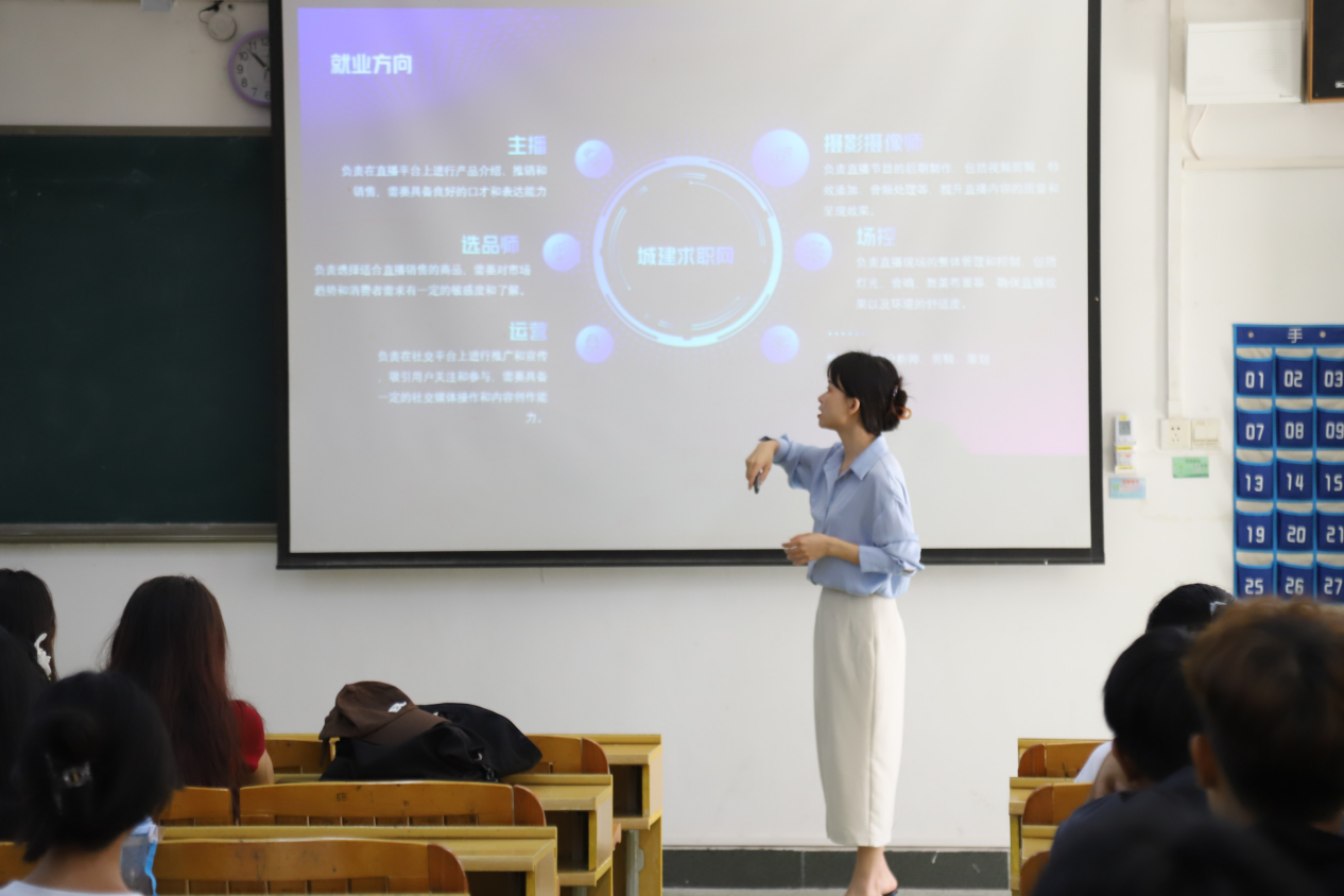 网络直播与运营专业聚焦数字创意融合服务,廖丁莹主任通过对专业前景和就业面向的详细分析,强调在校期间每位同学本专业网络传播、策划运营、市场调研等知识,同学们认真聆听,反响热烈。