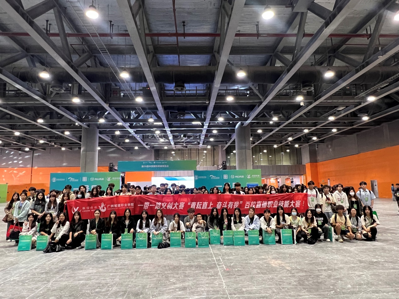 学校以从化区委宣传部为指导、学校与深圳联信文化传媒有限公司联合主办的“青耘直上·奋斗有我”百校直播职业技能大赛的参赛选手为班底,组织了240多名学生前往广州琶洲会展中心进行活动直播服务。在博览会上,学生以参赛团队为单位,基于比赛内容与规则,围绕本届博览会进行短视频内容创作、电商直播带货实训,同时参赛团队通过拍摄和编辑短视频,向参观者展示了展会产品的特色和优势,还通过直播带货的形式,为观众提供了了解展会信息的机会。在整个活动过程中,参赛选手共创作短视频数量449条,大赛话题#青耘直上奋斗有我#浏览量已突破1000万,集训期间共15个参赛团队参与直播实操,直播间总场观50955,总成交金额5019.39元。