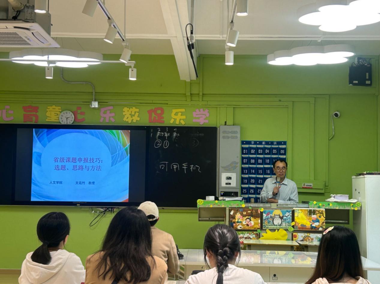 文远竹以独到的见解分享了省级课题申报的技巧,他认为,要想课题申报成功,既要有学术积淀,也要掌握课题申报技巧。文教授从选题、思路和方法三方面深入浅出地分享课题申报成功的经验。他以2023年度广东省哲学社会科学规划项目立项目录为例对广东省级课题进行分类,结合个人课题申报经验对课题选题阐述如何选题、标题构思等方面,并重点讲解了如何撰写课题申报书、研究方法、研究内容、研究思路以及申报中需要注意的普遍性问题。