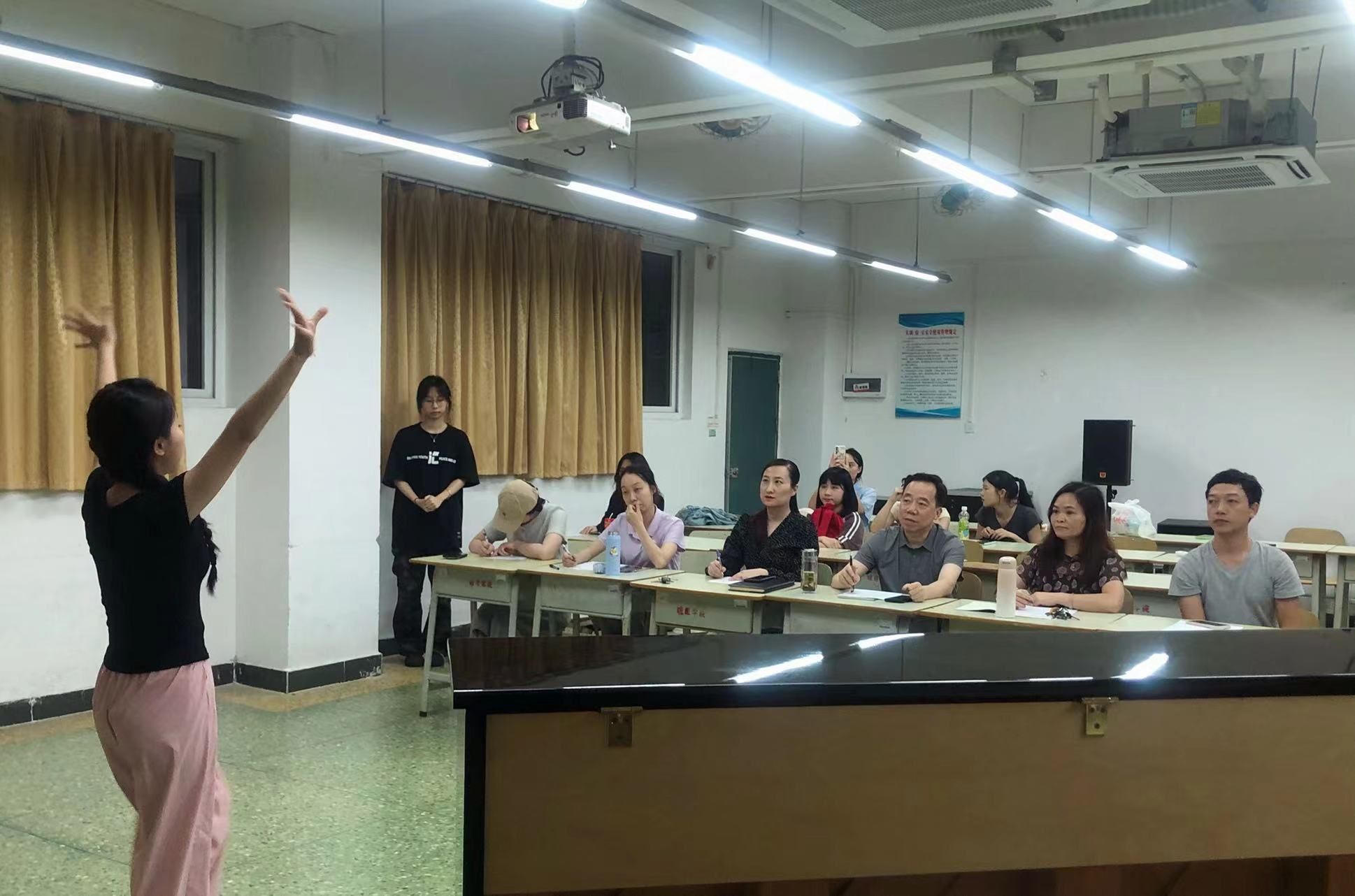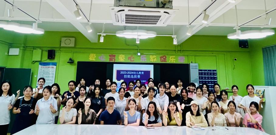 为提升学前教育专业学生的幼儿教育教学技能,选拔参赛队员集训参加2024年全省职业院校学生技能竞赛,5月9日,学前教研室在人文艺术楼4楼实训室举办学生技能大赛选拔赛,学院院长鲁岩,副院长王婧,学前教研室主任苏一波、副主任李元庆以及部分教师代表出席并担任本次大赛评委。