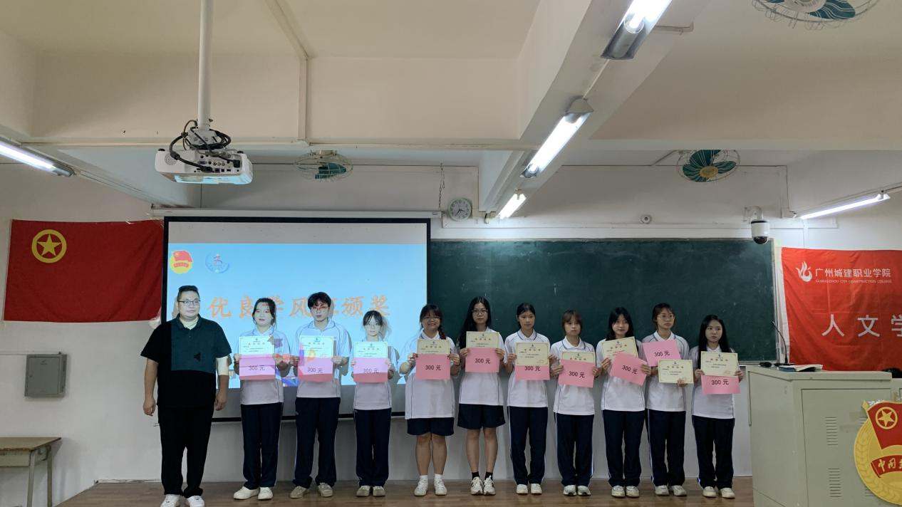 学院学生自律会指导老师赖明君宣读关于表彰2023-2024学年优良学风班级的决定。优良学风班级代表23新闻1班与23学前5班依次上台围绕班级管理、班级荣誉、班级风采以及班级未来展望等方面进行经验分享。随后,彭聪为荣获“十佳优良学风班级”的集体进行颁奖,给予班级建设启动基金奖励。