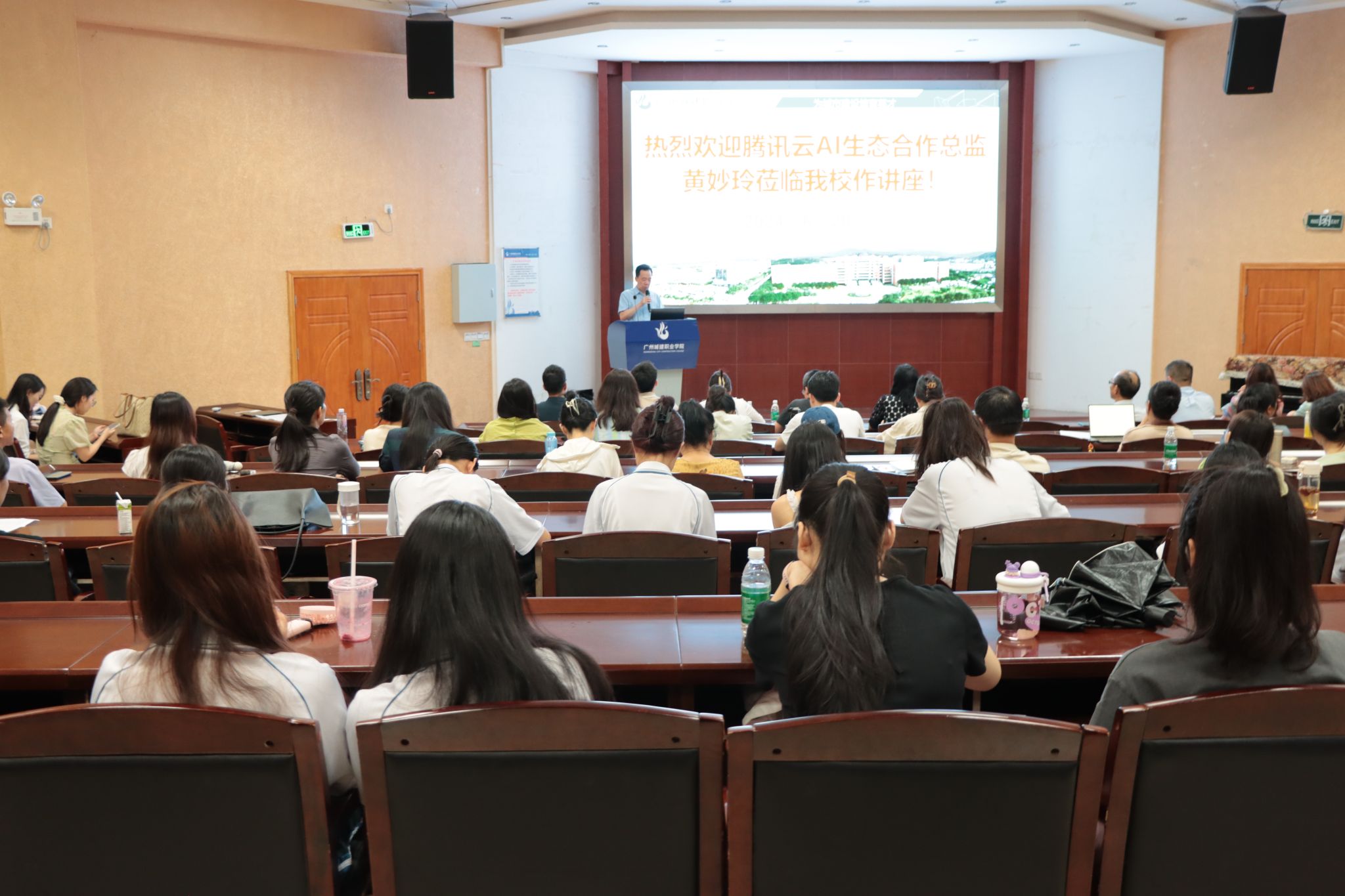 6月20日下午,由学校人事处(教师发展中心)主办、我院承办的凤凰大讲堂在建工机电楼A101报告厅举行,腾讯云AI生态合作总监黄妙玲女士应邀作了教育数字化转型专题讲座。学校人事处副处长龙轩,我院全体教师以及来自各二级学院师生近200人参加,讲座由我院院长鲁岩主持。