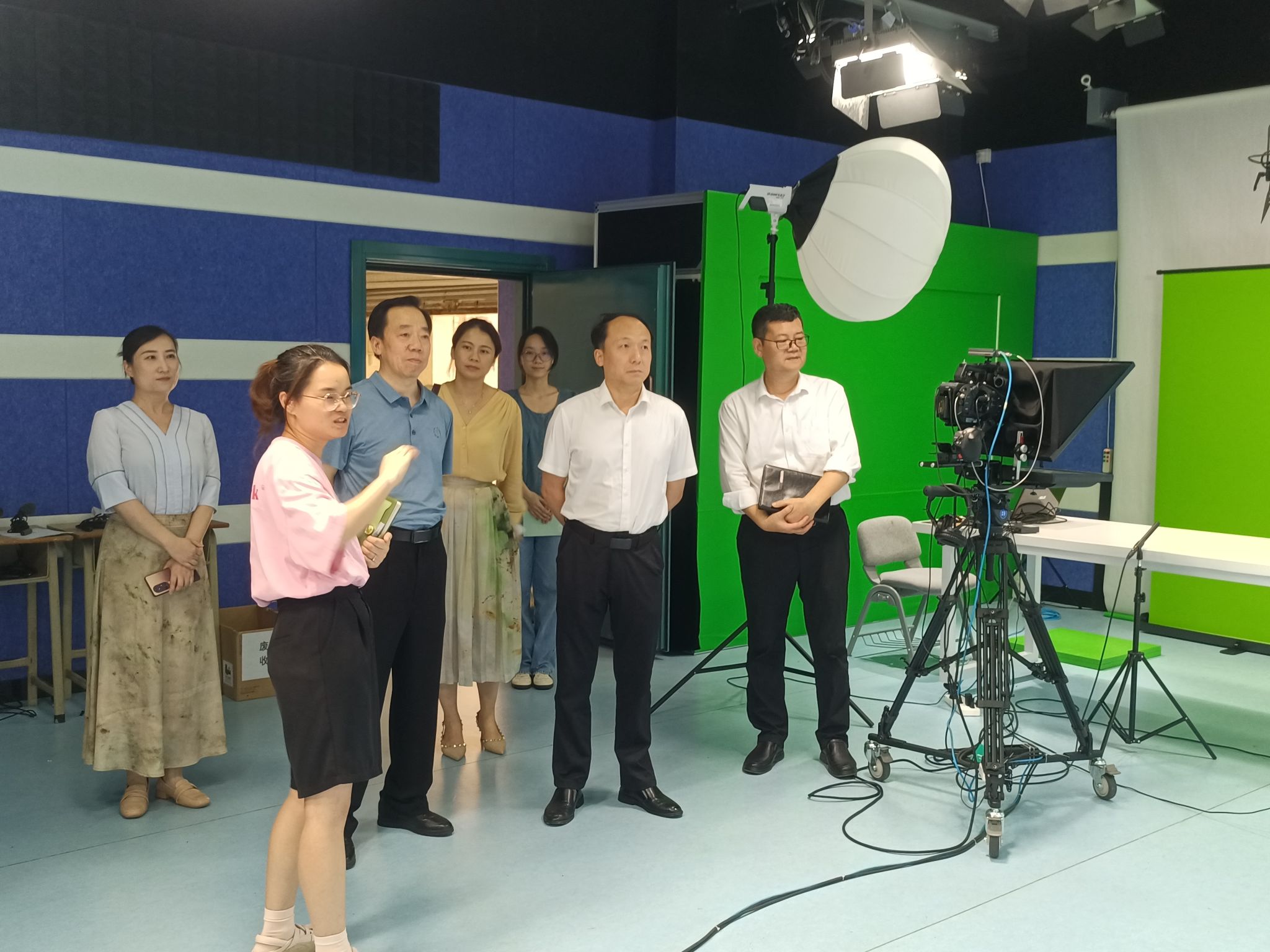 座谈会前,孙柱一行实地考察了我院新媒体专业群演播厅、融媒体实训室、直播实训室等实训场地。