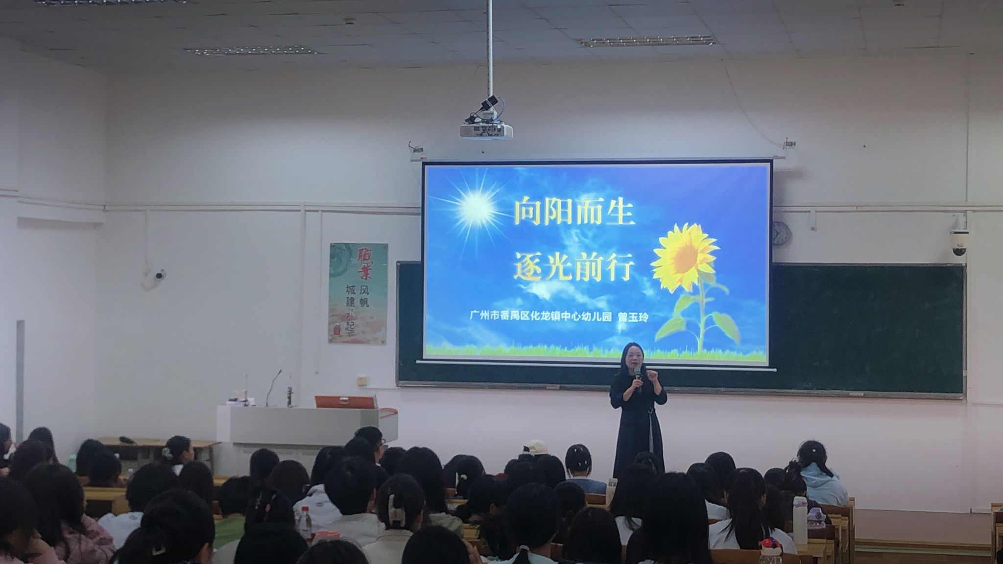 在职业认知与职业规划宣讲环节,曾玉玲以“向阳而生,逐光前行”为题作讲座。她结合自身丰富的幼儿园职业经历,为新生们描绘了一幅学前教育行业的广阔蓝图,不仅深入分析了当前学前教育专业的就业形势与发展趋势,还详细解读了相关政策文件,帮助新生们更加清晰地认识到专业前景与职业定位。她还鼓励大家树立正确的职业观,珍惜大学时光,制定切实可行的个人发展规划,为未来的职业生涯奠定坚实基础。