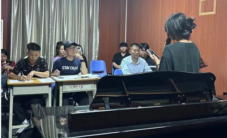 为激发学生的学习热情,提升学生专业水平和舞台实战能力,形成你追我赶的良好学风,一年一度的音乐表演专业学生技能竞赛校内选拔赛于10月10日在创训楼实训室顺利举办,音乐表演教研室主任黄彤、国家一级指挥家曾葵、副教授王文春等专业老师担任评委参与比赛。