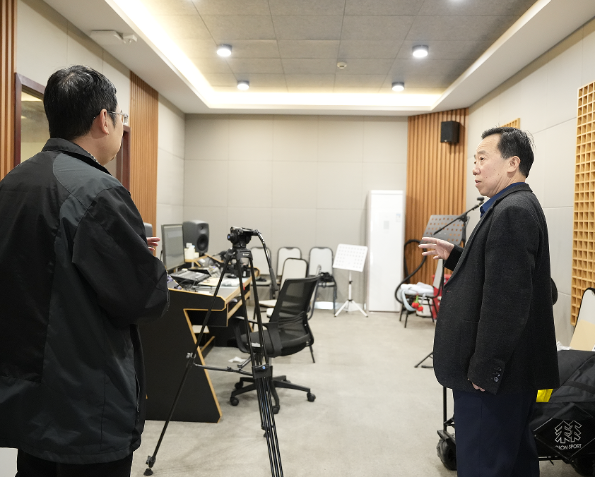 会后,鲁岩院长一行在陈宇哲院长的陪同下参观了艺术与新媒体学院的超高清融媒体实训中心实训室、全景声录音棚、调色实训室、数字影棚、书法实训室等教学及实训场地,实地了解了艺术与新媒体学院实训室建设情况。