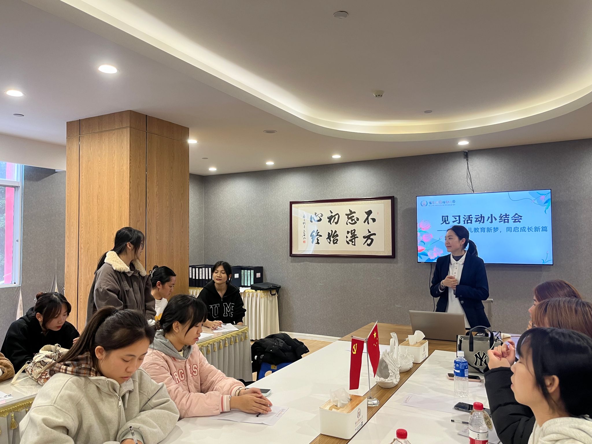 见习结束前,幼儿园组织了简短高效的教育见习小结,以问题为导向进行复盘研究,帮助同学们查找不足,并提出指导意见。