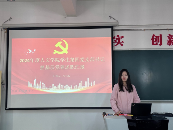 学生第四党支部书记吴伟仪在述职