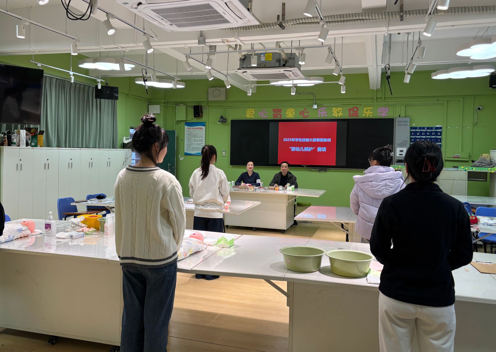 婴幼儿照护:参赛选手们正在进行婴幼儿日常生活照料、疾病预防、早期教育等方面的训练,并模拟真实场景进行实操演练,不断提升专业技能和服务意识