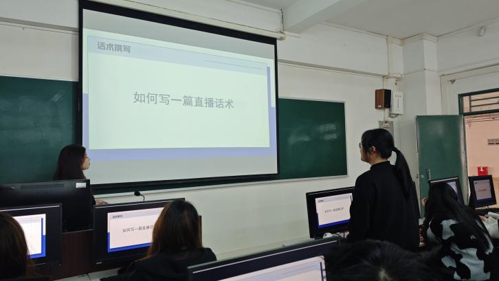 在教学内容设计上,钟佳华强调“创新”与“精准”并重。她指出,差异化内容与垂直领域深耕是突破信息洪流的关键,并通过展示多元化直播间风格与人设案例,引导学生思考自身定位。课程还设置模拟实战环节,学生围绕产品卖点撰写文案、设计话术,钟老师逐一点评优化,助力学生将理论转化为实操能力。
