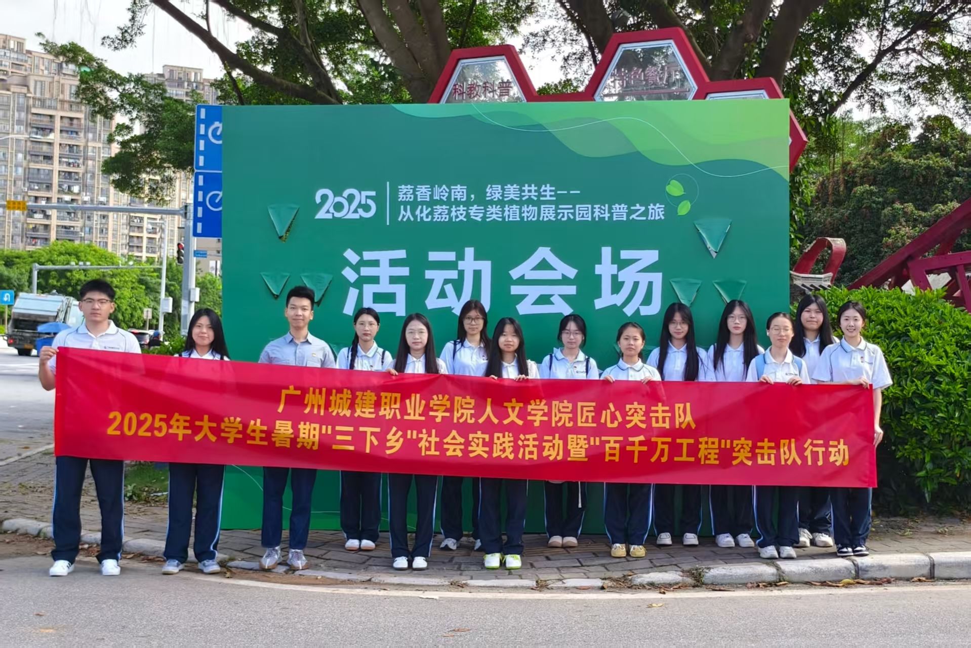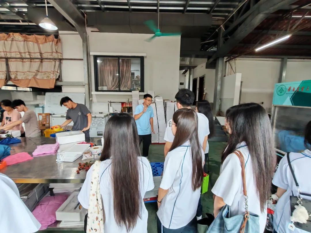 “三下乡”社会实践的第一站,突击队员来到从化荔枝博览园参加“荔香岭南,绿美共生——从化荔枝专类植物展示园科普活动”,在从化荔枝产业研究院技术总监邱皓烽带领下,参观从荔枝种植到销售运输的全链条过程展示,了解从化荔枝产业发展前世今生,纷纷化身“农业侦探”去破解“荔枝科技密码”。