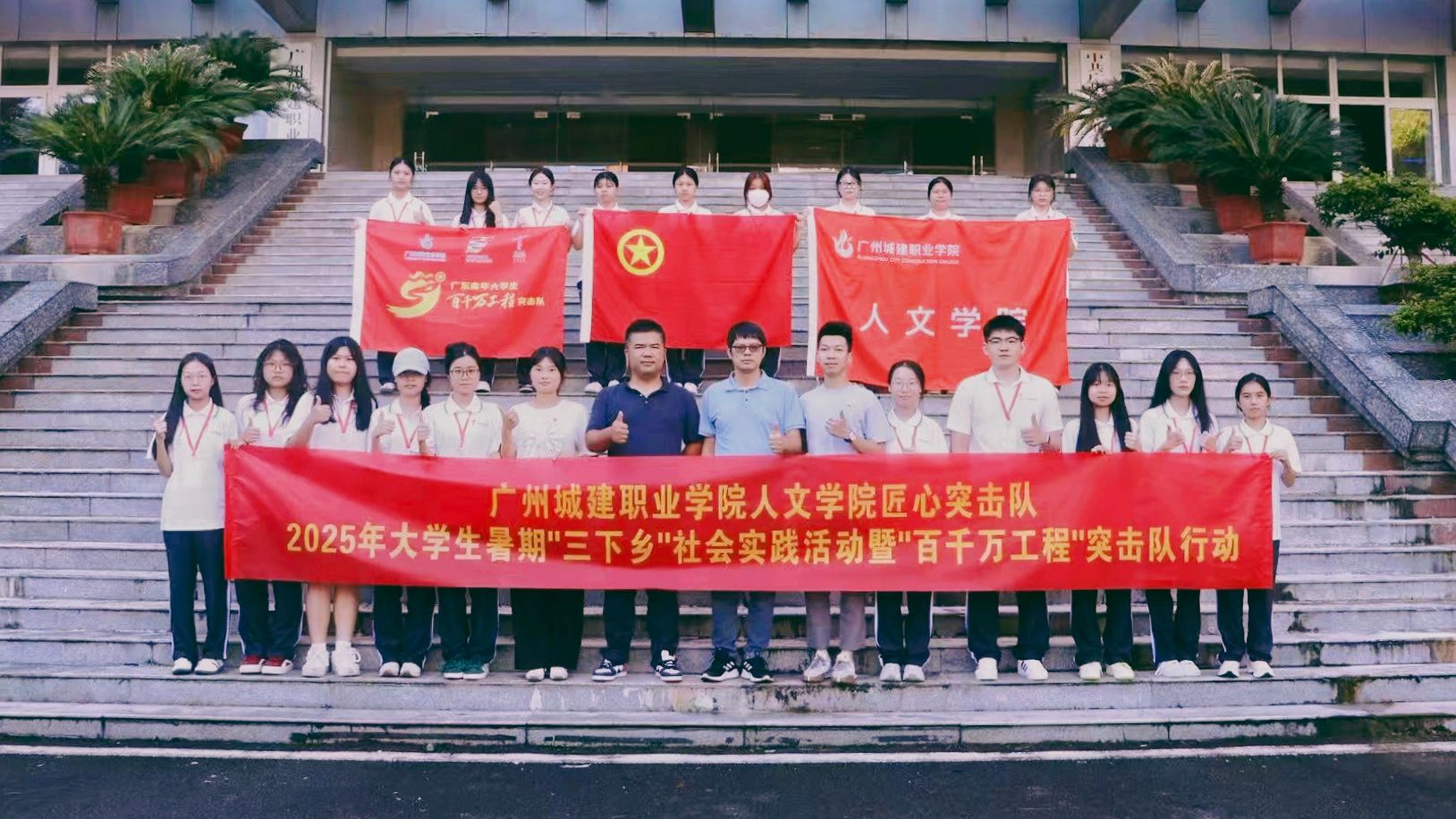 “广州从化凤二村有一种鸡号称是鸡中的‘王者’,这种鸡毛色艳丽,外形好像凤凰,所以就叫做‘凤凰鸡’”。在从化江埔凤二村百年荔枝林里,突击队员们正顶着炎炎烈日,“享受”着岭南特有的蒸腾,蹑手蹑脚拍摄着从化凤凰鸡生态养殖基地的特写,汗水浸透了印着校徽的白色校服。这支由广州城建职业学院人文学院团委组建的“百千万工程”匠心突击队,带着无人机、直播架和装满教具的行李箱前往于6月30日广州从化区凤二村开展为期一周的“客传凤二——文化创意和保育项目”暑期“三下乡”社会实践活动。