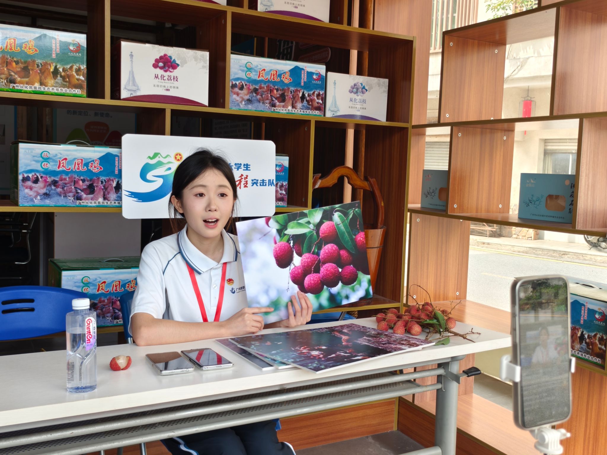 “家人们看!这就是传说中的从化凤凰鸡,靓鸡中的‘战斗机’,皮爽肉滑、鸡味香浓,吃完‘舔舔脷’。”突击队走过农田与山地,来到从化凤凰鸡生态养殖基地,将拍摄镜头对准了“满山跑”的凤凰鸡,记录鸡群的翻山越岭瞬间。另外一组队员则走进了荔枝林进行拍摄,用镜头全方位展示荔枝产品,更记录下荔枝从采摘到预冷的全过程,突击队员将把这些拍摄的乡村素材融入当地宣传片制作,向外界展示凤二村的特色农村品。与此同时,突击队员们顶着烈日学习荔枝采摘技巧,在果农指导下掌握桂味、糯米糍等品种鉴别方法,开展了一场别开生面的“直播”活动,让网友直观感受荔枝品质,实现从枝头到舌尖的甜蜜接力。