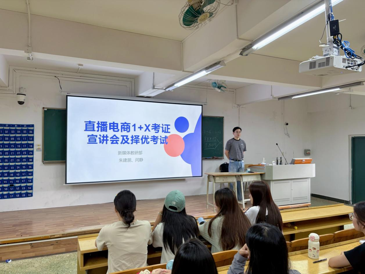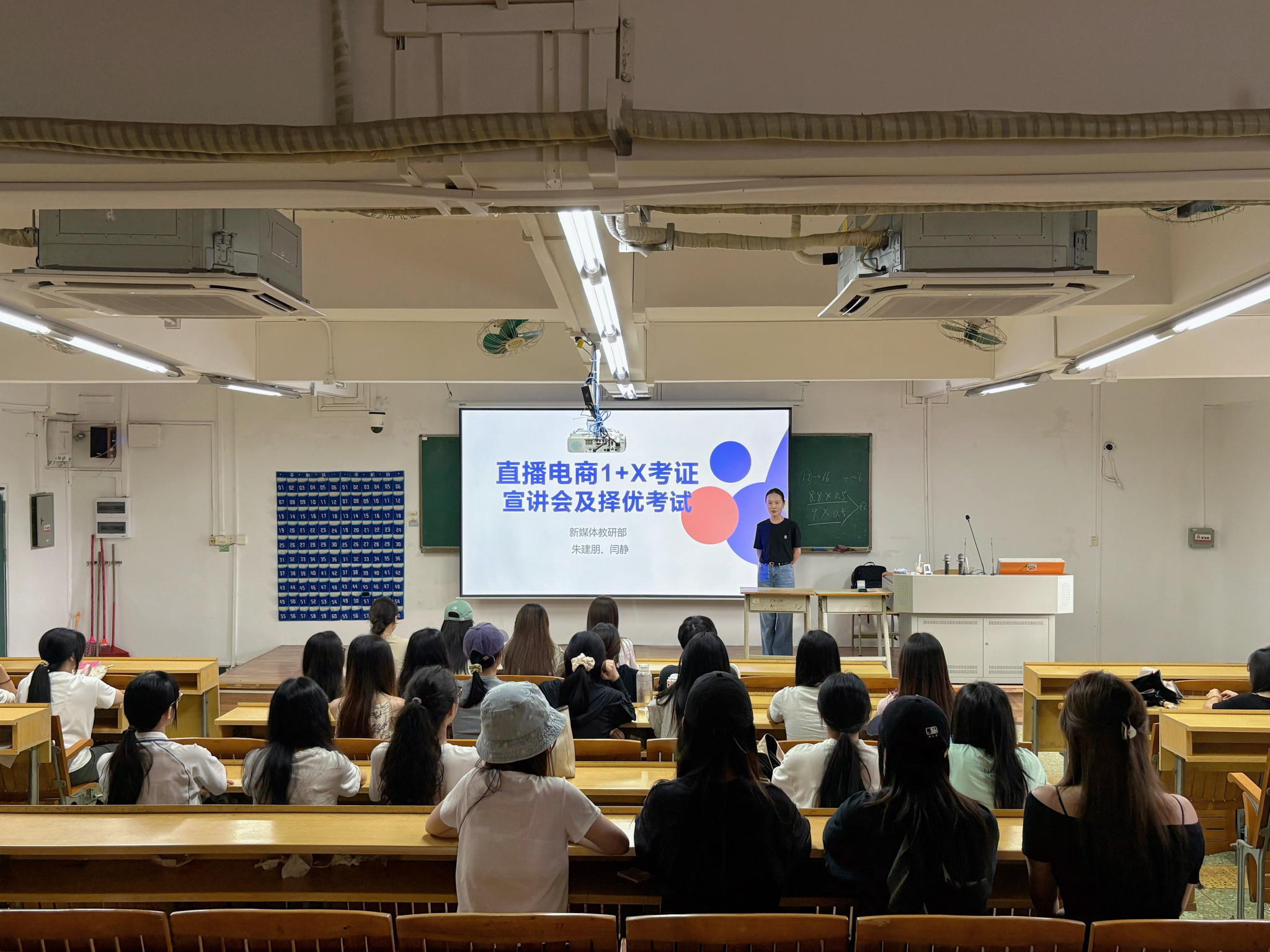 为深入贯彻教育部《国家职业教育改革实施方案》精神,紧密对接行业岗位需求,切实提升专业人才培养质量,9月11日下午,新媒体专业群在人文艺术楼224教室隆重举行“1+X”直播电商(中级)培训开班仪式。新媒体专业群教师朱建朋、闫静以及来自网络直播与运营、网络新闻与传播、传播与策划三个专业的近60名学生共同参加。