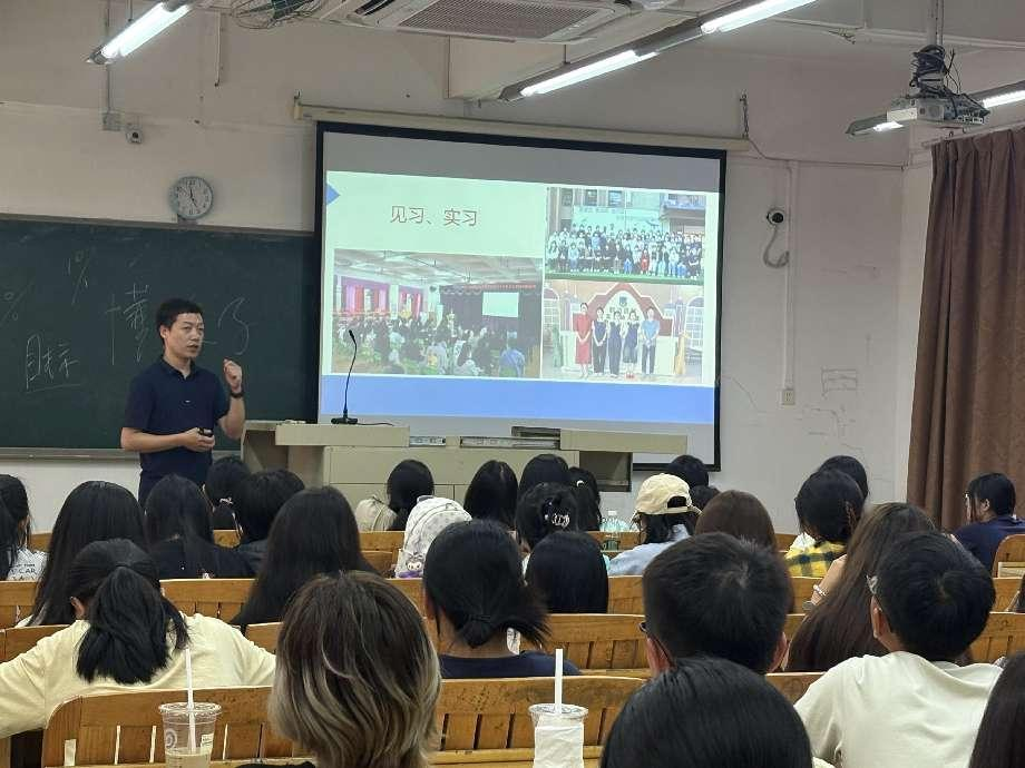 活动在林培淼副教授题为《学前教育即将走进新时代:认清新形势,规划好时光,以实力赢未来》的专题讲座中拉开帷幕。他以自身丰富的幼儿园工作经验出发,立足新时代学前教育发展大势,深入浅出地剖析了行业发展趋势与人才需求变化,通过真实案例与数据对比,帮助新生建立清晰的职业认知。他特别强调:“在这个充满机遇与挑战的时代,唯有扎实的专业根基、持续的学习能力和深厚的教育情怀,才能在幼教领域赢得未来。”讲座现场掌声不断,新生们纷纷表示对专业前景有了更深刻的理解,对职业生涯规划有了更明确的方向。