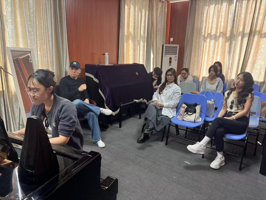 近日,我院音乐表演教研室在创训楼实训室举办2025-2026学年学生技能大赛选拔工作,音乐表演教研室主任黄彤,学生技能大赛指导老师郭金铭、段江旻、曾滢和12名学生参加了本次活动。