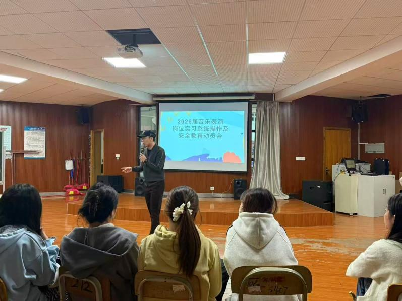 按照学校《加强毕业生顶岗实习管理的若干规定》文件精神,音乐表演教研室于11月13日在5407教室召开毕业生岗位实习动员暨安全教育会。教研室主任黄彤,指导老师段江旻、郭金铭以及2023级音乐表演班、2024级音乐试点班全体毕业生参加了本次会议。