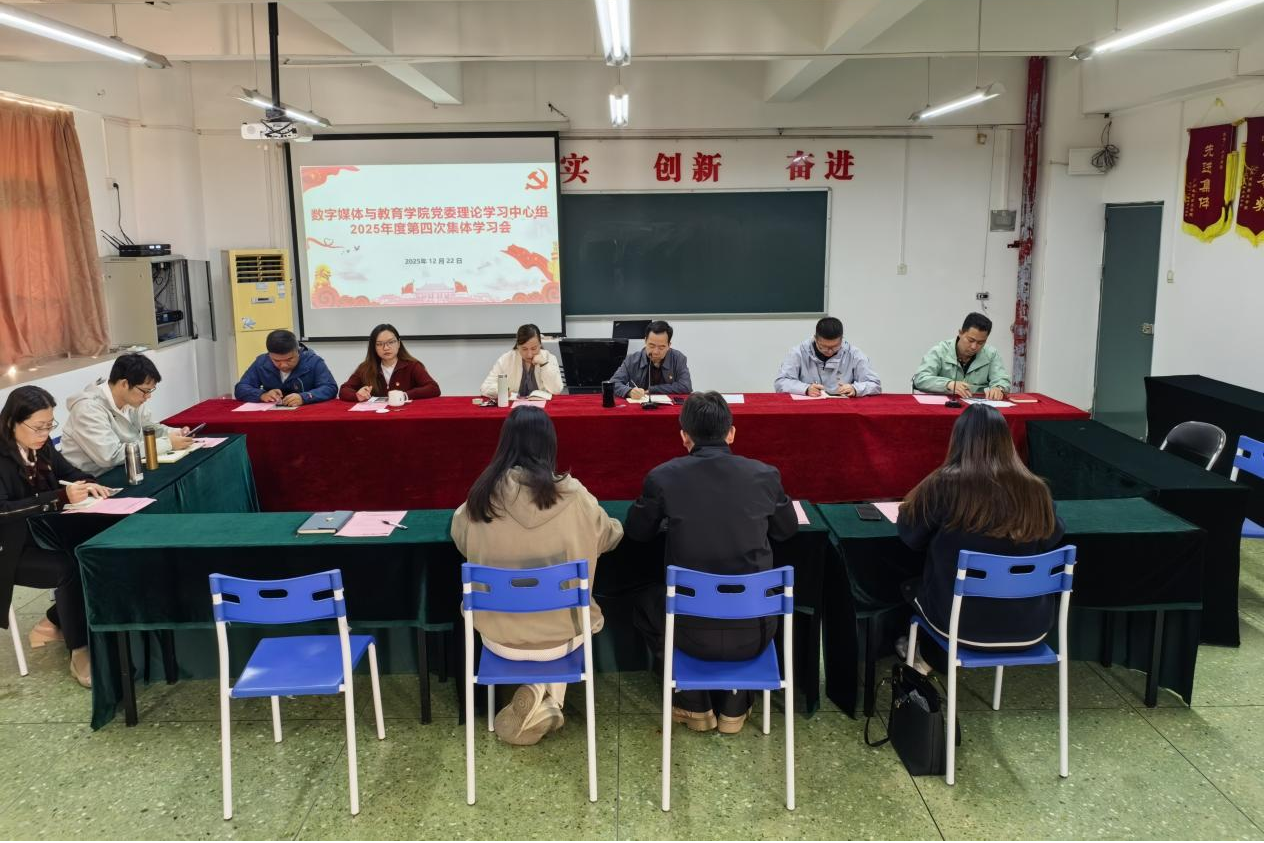 12月22日上午,学院党委理论学习中心组召开2025年度第四次集体学习会,专题学习党的二十届四中全会精神以及习近平总书记视察广东和出席第十五届全国运动会开幕式重要讲话重要指示精神等内容。学院党委书记鲁岩主持会议并领学,全体党委委员、各党支部书记参加学习。
