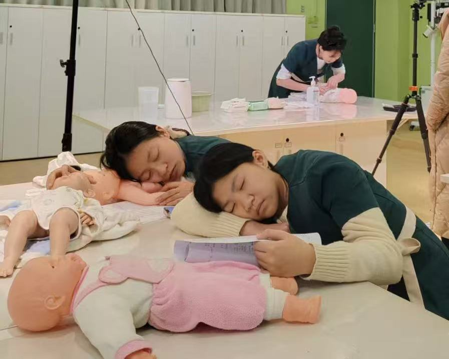 “婴幼儿照护”赛项学生训练现场