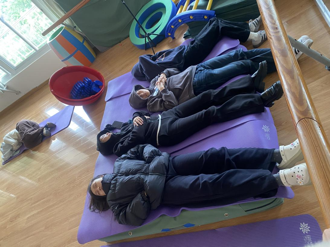 师生备赛之余在训练现场休息