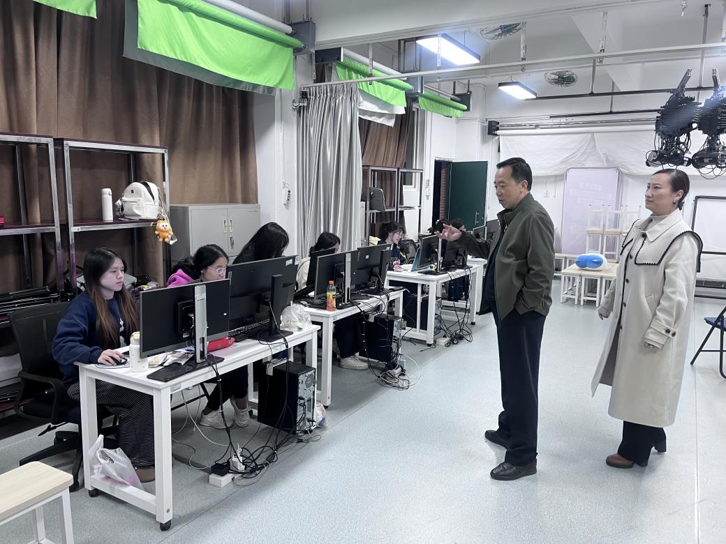 优异成绩的背后,是学院领导的高度重视与全程关怀。从赛事启动之初,学院便成立专项备赛工作组,院领导多次深入实训室、排练场慰问指导,协调解决场地、设备、师资等关键问题,为备赛工作提供了坚实保障。备赛期间,鲁岩院长、王婧副院长、郝世煜副院长多次亲临训练现场一线指导,与师生并肩作战,鼓舞参赛士气,为选手们注入了强大动力。