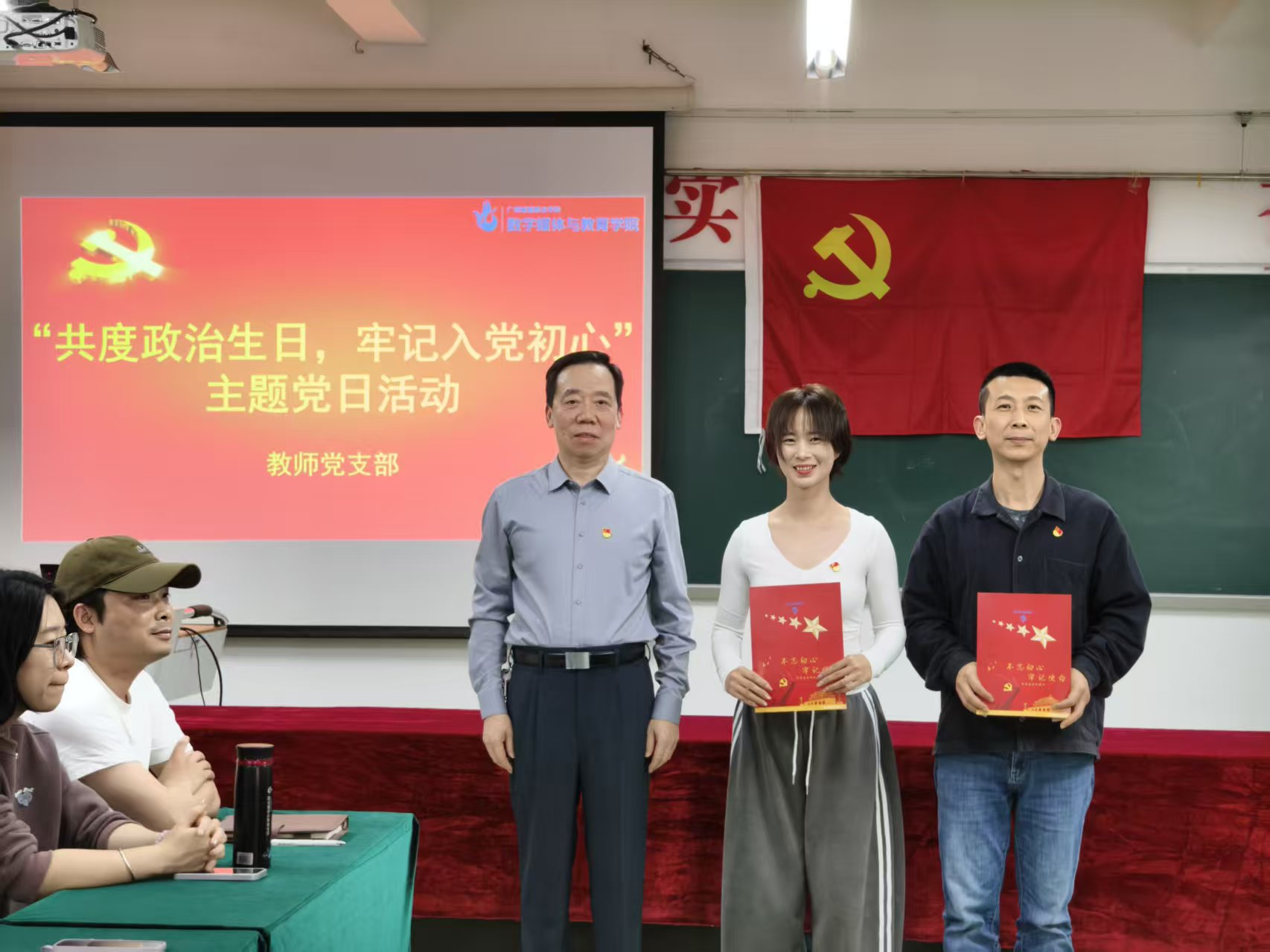 此外,党支部还开展“共度政治生日,牢记入党初心”主题党日活动,鲁岩为1-3月份入党教师颁发“政治生日卡”,党支部组织委员张文娟带领党员教师们重温入党誓词,帮助党员教师进一步坚定理想信念,铭记入党初心。