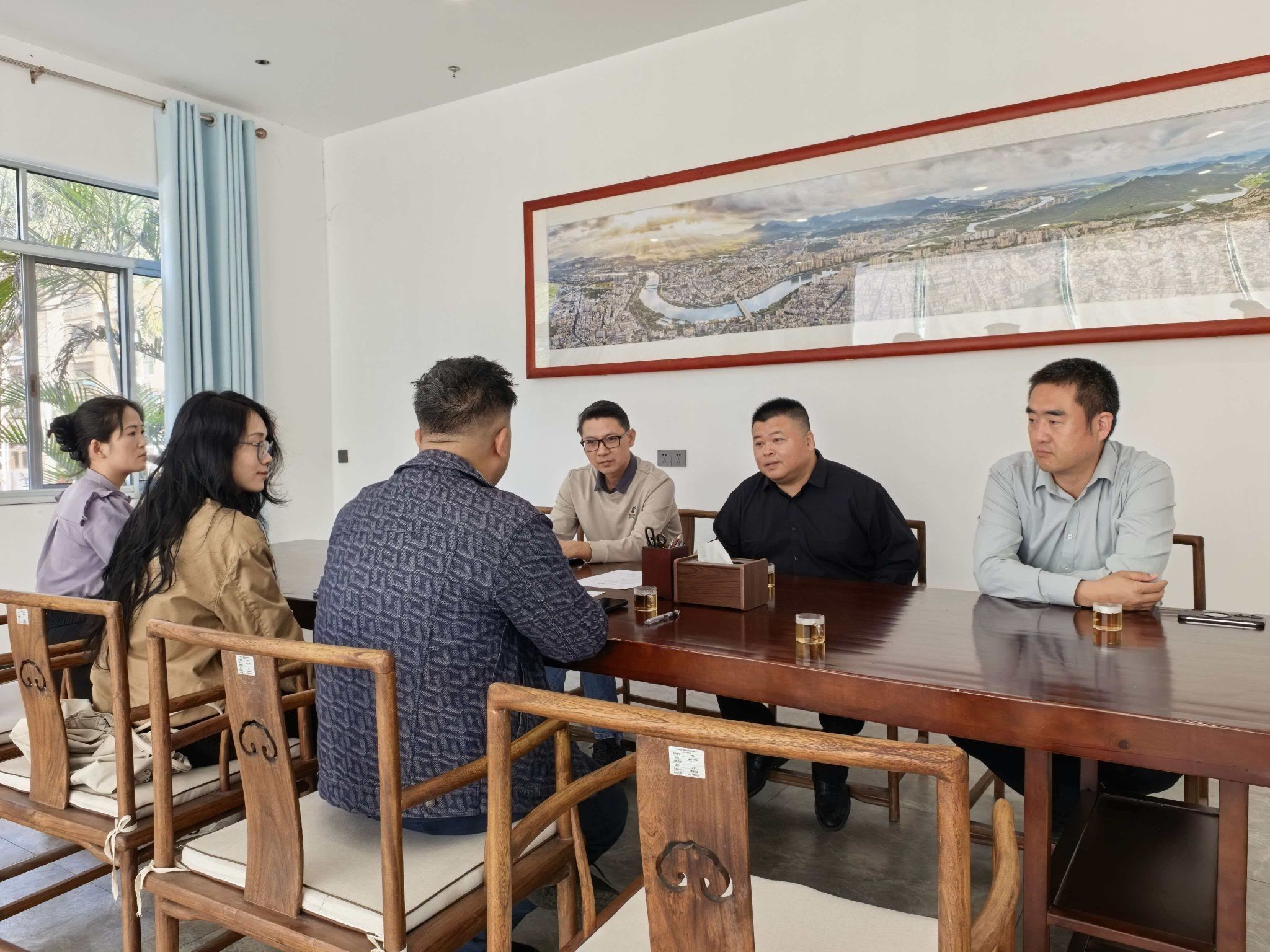 企业副总经理赖国东介绍了公司的基本情况,对来访的教师表示热烈地欢迎。企业综合部部长黄宇鹏则介绍了行业人才需求情况,他指出,在媒体融合背景下,从化区在内容生产、技术应用及传播方式上的进行创新实践,特别需要一批具备策划能力的数字媒体技术、短视频制作、网络直播等新兴领域的技能人才。区志愿者行动指导中心副主任罗铸从“百千万工程”突击队行动工作的角度出发,提出了关于提升学生社会实践能力与就业能力的实践设想,并就开展校企项目合作、互派师资交流等方面双方达成初步共识。