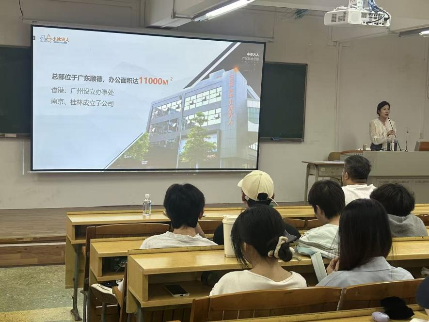 为深入贯彻教育部供需对接就业育人项目相关精神,扎实推进“厂中校”校企协同育人模式,4月23日下午,佛山冰火电子商务有限公司产教融合研究院副院长邹文静、招聘经理梁思琪一行莅临我院开展“厂中校”项目宣讲活动。学院副院长龙轩,项目对接负责人、新媒体专业群教师谢建军副教授,辅导员黄金坤以及400多名学生参与了宣讲会。