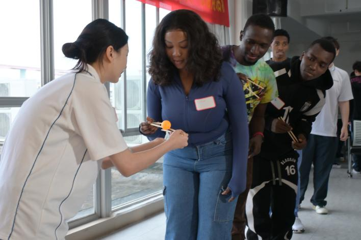趣味游戏环节将活动推向高潮。筷子夹乒乓球考验协作与耐心,同学们默契配合、接力冲刺;汉语传声筒聚焦词汇与数字,在轻声传递中巩固中文表达;笔画拼汉字让大家在动手实践中认识汉字结构,感受汉字之美。每项游戏都兼具趣味性与知识性,同学们用汉语沟通交流,在玩乐中提升汉语应用能力。
